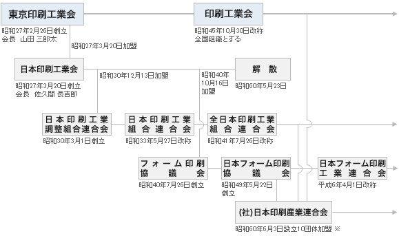 (注)この変遷表は印刷工業会を中心とし、(一社)日本印刷産業連合会との関係を示した。